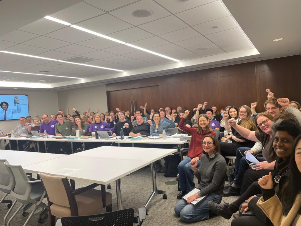 Last Halloween, we gathered in Schwartz Plaza with a couple hundred allies, including Zohran Mamdani and other elected officials, to celebrate the start of our negotiations. A year later, we brought an equally big crowd into bargaining, with more than 50 people in the room and another 75 on Zoom. Together, we showed the administration’s representatives that we’re serious and united in demanding a fair and strong first contract — and we saw firsthand the power that comes from packing the room.